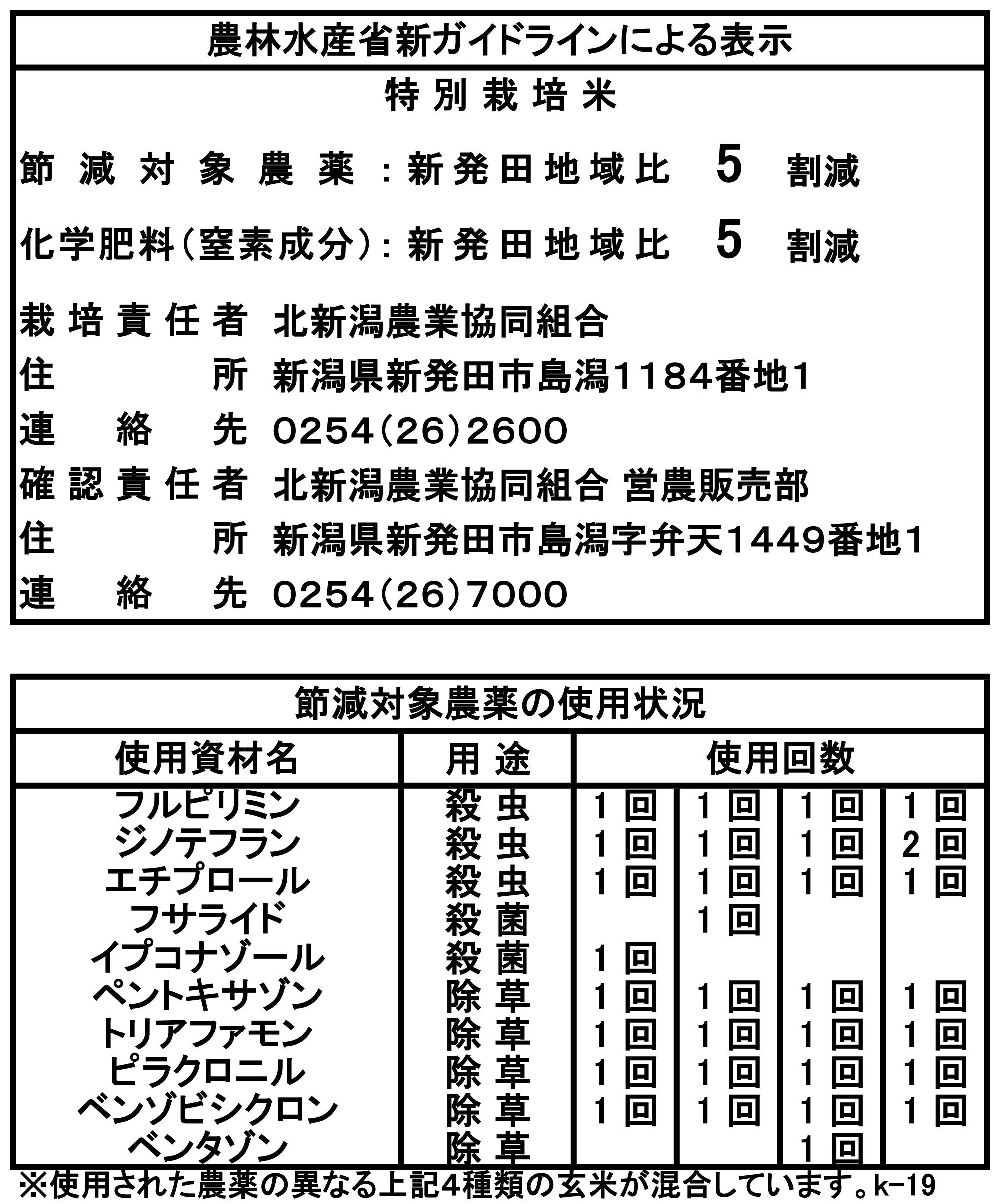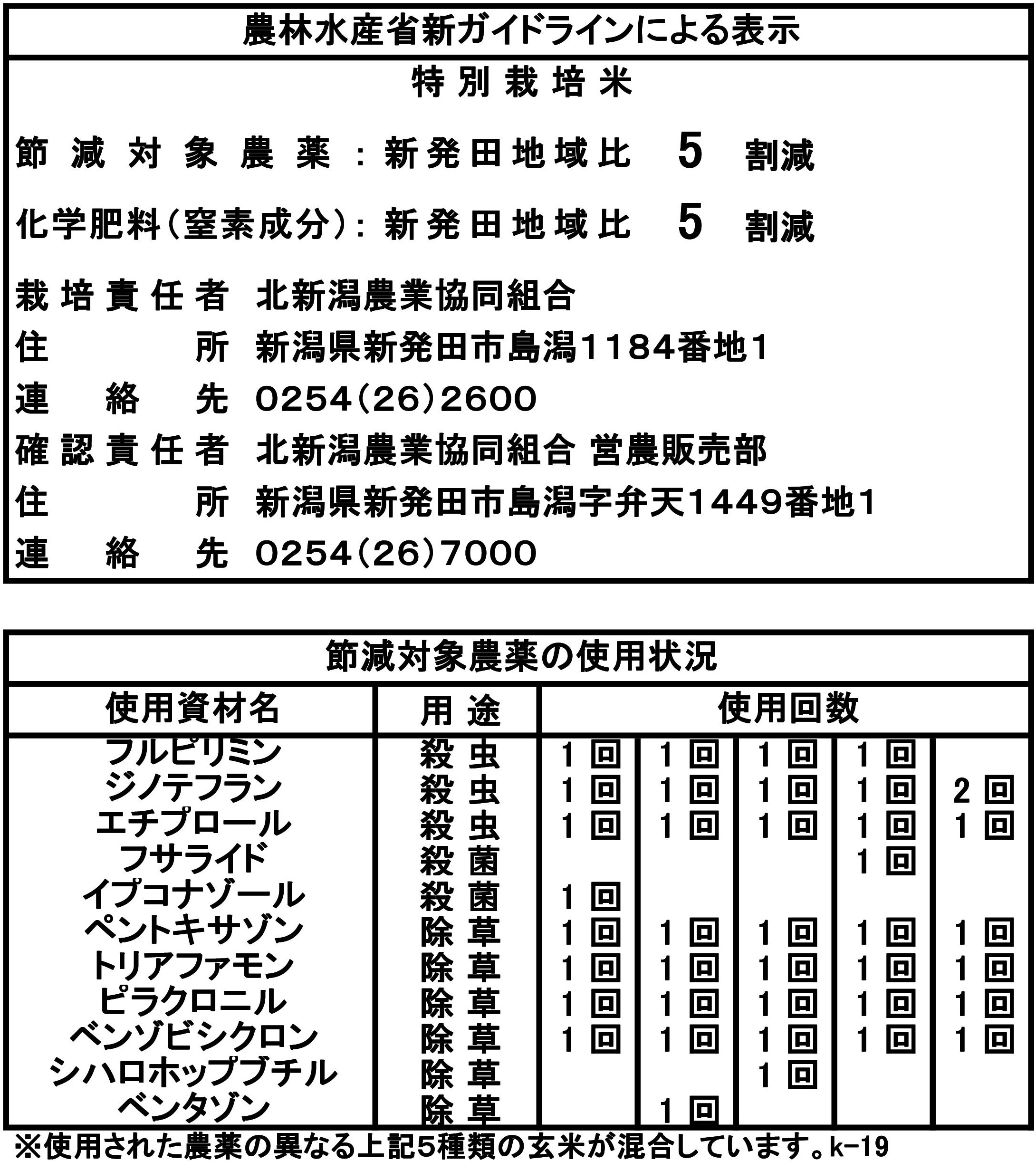 特別栽培米コシヒカリ(ロットNo. k-19)の節減対象農薬の